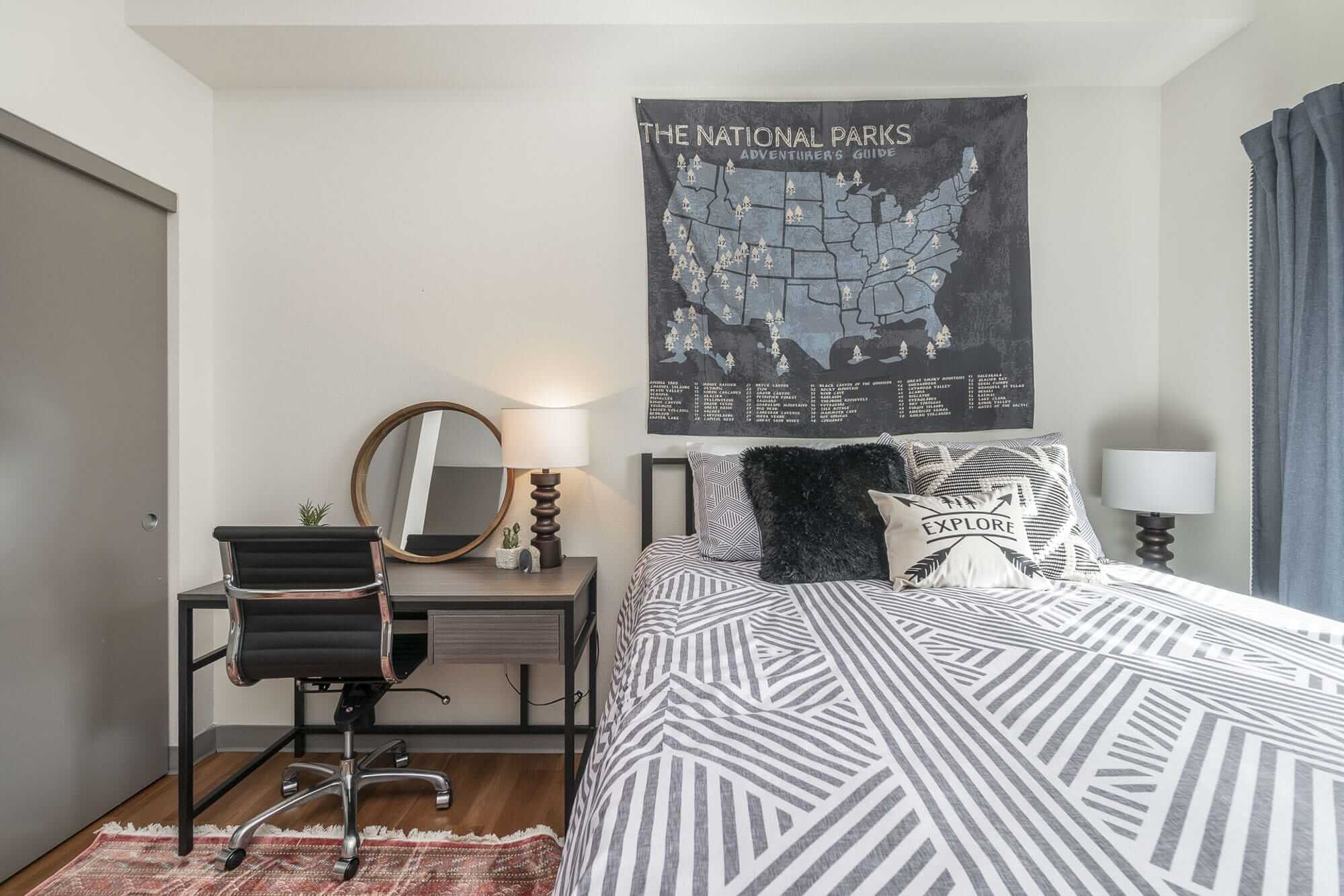 I have been apartment hunting for the ’26-’27 school year for the last two months! I visited the Patterson Social recently and I was very impressed with how close they are to UofO. There’s tons of restaurants within walking distance of the building, as well as tattoo shops, bars, vintage stores, museums, and luckily all of my classes. The area is quiet and nice, it seems like there’s a lot of things to do in the area which is important for a college student so far away from home. Alex gave me my tour and was very kind and answered any question I had. The views from the building are stunning and the amenities are really great. They have two fitness rooms as well as multiple study rooms so you can keep work separate from home. I’m looking forward to making this place my new home!