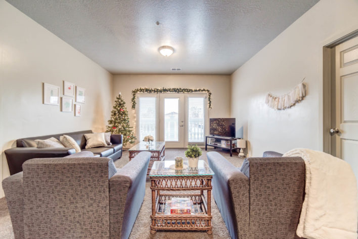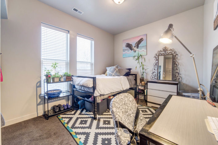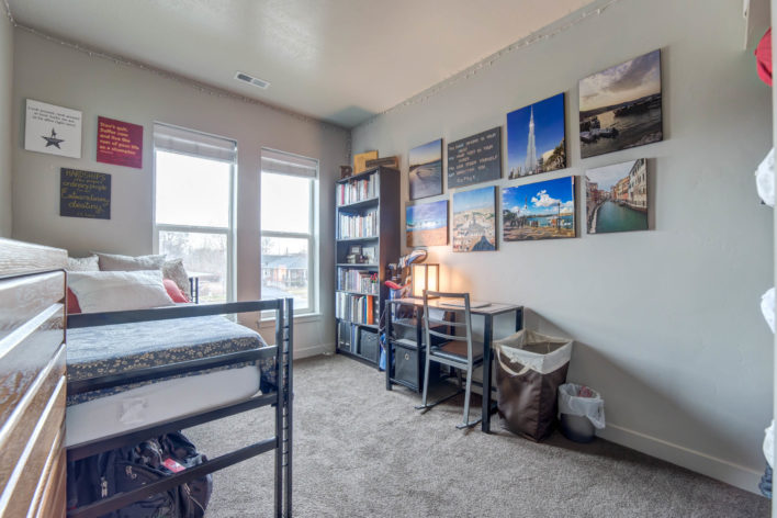 Old Academy is a very social apartment complex located next to the city library and just a few blocks south of BYU Campus! Each unit has four private bedrooms, for a total of four tenants. Each unit also has two bathrooms, a washer and dryer, a dishwasher, and central air, and the complex has a clubhouse. Reserved underground parking stalls are available for purchase on a limited basis. Free aboveground parking stalls are first come, first serve northeast ramp (entrance from 700 North).