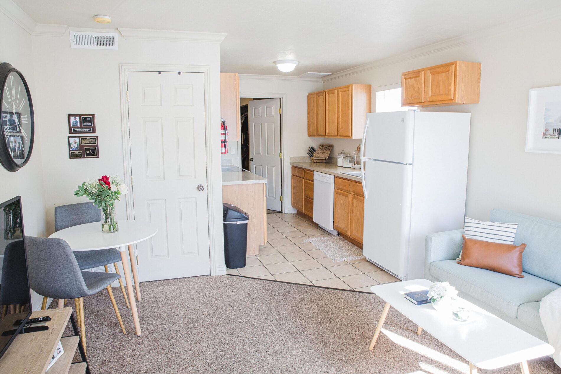 University Courtyard offers apartments close to the BYUI Campus! We are part of a lovely neighborhood community and our clubhouse has FREE laundry and complimentary storage units available for tenant use! We also have a fully furnished clubhouse complete with a couch, TV, billards table and foosball table. Come tour today!