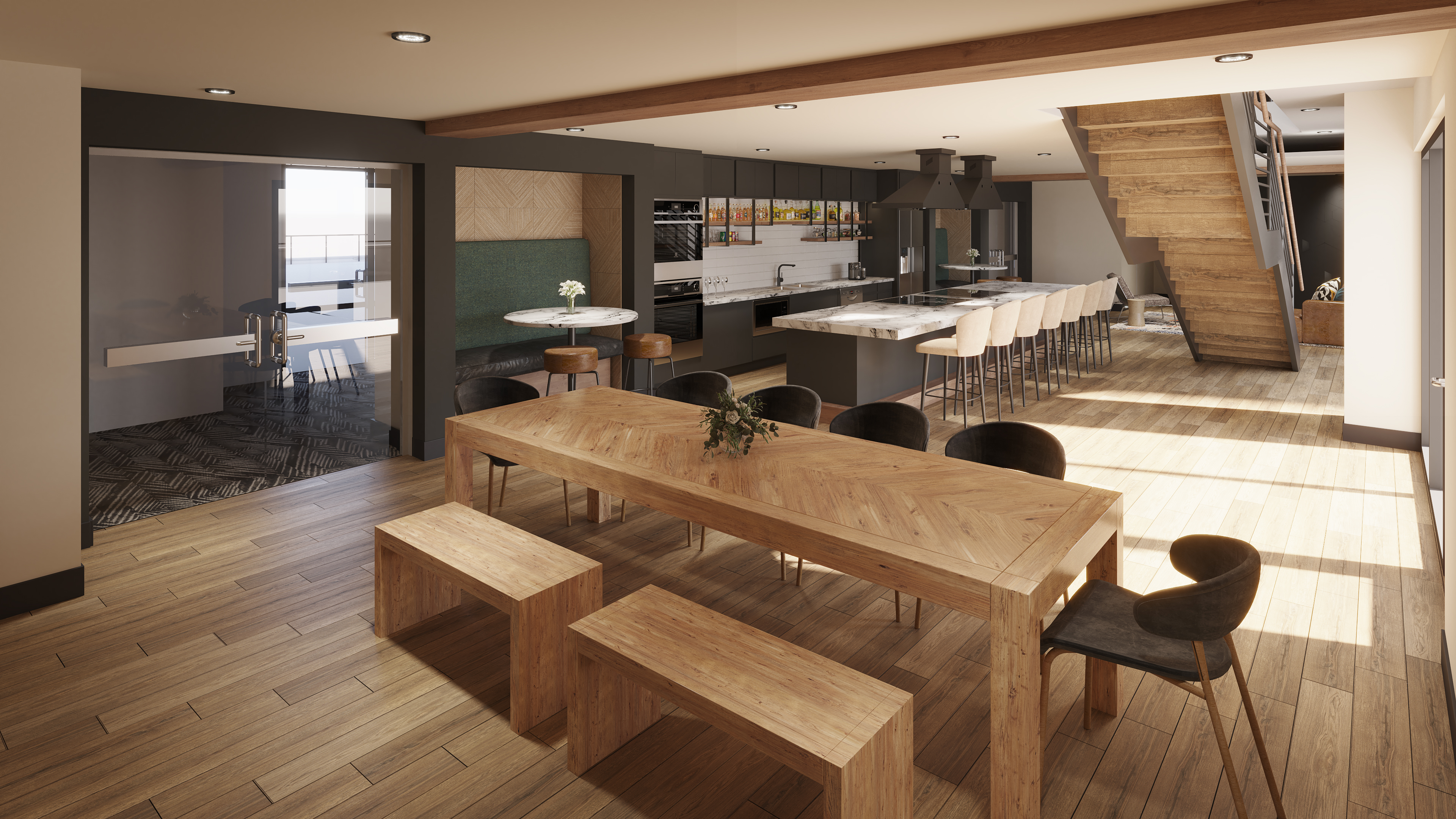 With a weekday shuttle to the University and weekend transportation to nearby ski resorts in the winter, getting to class or hitting the slopes is effortless. When you’re home, enjoy next-level amenities including a heated pool, sauna, full-size 24/7 fitness center, multiple game lounges, study lounges, and a sky lounge!